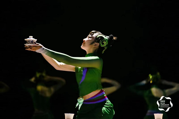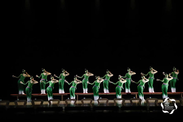 本次大艺节以“民族魂·中国梦”为主题,分舞蹈、戏剧、十佳歌手三个专场。据悉,全省98所高校共选送舞蹈、戏剧及校园十佳歌手节目647个,其中49所高校的154个节目入围现场展演。在获奖作品中,由教师教育学院张桂锦老师指导的《染坊往事》生动展现了具有江南水墨韵味的染坊图景,灵动柔美的肢体语言与跨越时空的文化共鸣赢得了现场观众的阵阵掌声;由音乐学院潘晓敏、彭珏非、姚元鹏老师指导的《茶飘香》《额尔古纳河》以如云似水的舞姿描绘了自然与人文景观的秀丽,表达了无尽的中华文化与意境之美,这三部极具中国特色的舞蹈作品均荣获舞蹈甲组一等奖。此外,《九色鹿》《喜水》两部作品荣获舞蹈甲组三等奖;陈传同学凭借《刮起一阵不祥的暴风雨》的精彩演绎,荣获校园十佳歌手乙组优秀歌手。