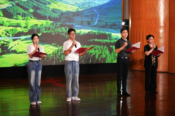 在中华人民共和国成立75周年之际,为引导青少年感受祖国发展取得的辉煌成就,进一步营造“银青携手”爱党爱国的良好氛围,9月25日下午,由湖州市关工委和我校主办,湖州市朗诵协会、湖州市青少年朗诵团、湖州市老年大学关工委协办的“诗歌同声颂党恩·银青携手新征程”朗诵会在我校音乐厅举行。我校副校长潘音,市关工委常务副主任、二级巡视员夏冰出席并致辞,校原党委副书记、校关工委副主任杨柳,校原纪委书记、校关工委副主任朱鸿出席,市关工委联席会议成员单位分管领导,市关工委主任常务会议成员,校关工委成员,校各关工委分会成员,各区县及南太湖新区关工委专职副主任,湖州市朗诵协会成员,湖州市青少年朗诵团成员,“五老”代表,大学生代表等400余人参加。