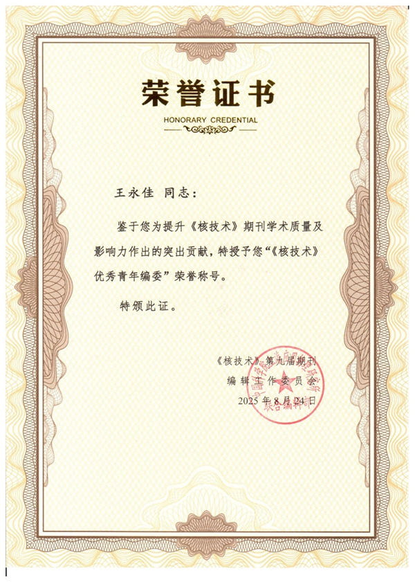 我校师生获评《核技术》“优秀论文”和“优秀青年编委”(图)